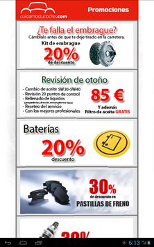 La aplicación te da acceso a fantásticas promociones para ayudarte con el correcto mantenimiento de tu vehículo. Sólo tienes que seleccionar una promoción, elegir el taller en el que quieres disfrutarla