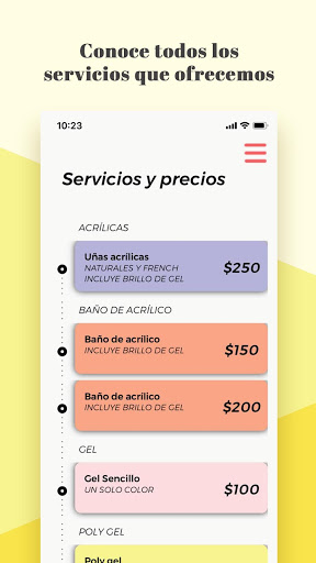 Olvídate para siempre de las citas, descubre cuál es la sucursal mas cercana a tu ubicación, que manicurista esta disponible en tiempo real, redirígete a las paginas oficiales de FB e IG, teléfonos de contacto y mucho más.