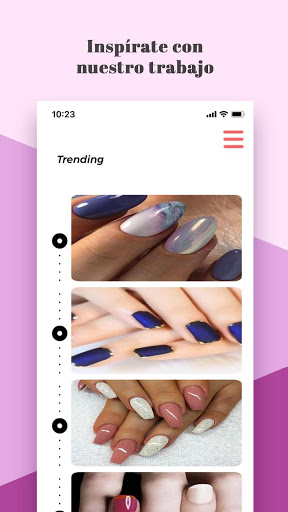 Así sabrás exactamente en que momento arrancarte a enchular tus uñas, *sin tener que hacer cita ni esperar por ser atendida*. Además diviértete revisando las tendencias por temporada, así como el portafolio de trabajos de cada manicurista, para que sepas quien hace ese diseño especial, que estas buscando.