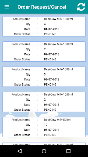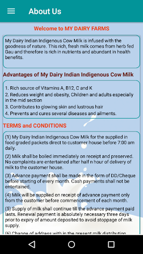 Customer Can Special order Booking Dairy Products through This app and Checking Based On Ordered ,delivered and pending Product Report. My Dairy Indian Indigenous Cow Milk for the supplied in food graded packets direct to customer house.