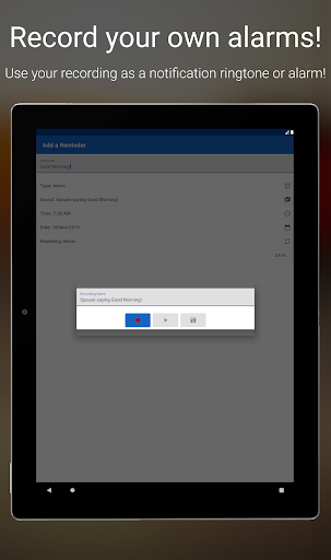 🎙️ Record your own notification or alarm! This truly innovative feature allows you to take full control of your reminders! Say something and hear it back as a notification or alarm!