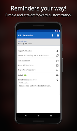 Voice Reminder - Recordable Notification and Alarm allows you to create customizable reminders and todo lists fast and easy! Never forget again! Let us remember everything for you!