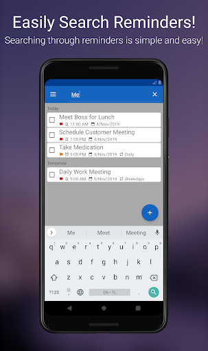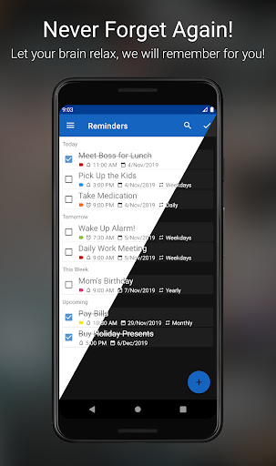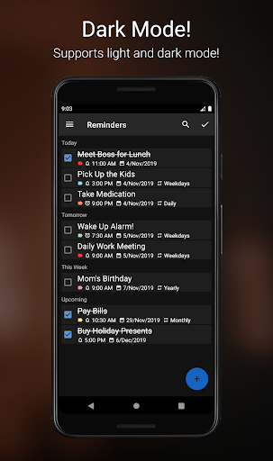 🗃️ Reminders are organized by date and time! Easily see reminders for today, or coming up this week! Easily check off finished reminders from the home screen!