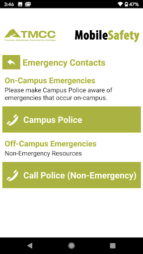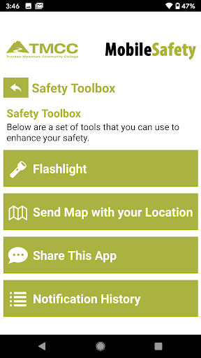 - Safety Notifications: Receive instant notifications and instructions from TMCC Campus Police when on-campus emergencies occur.