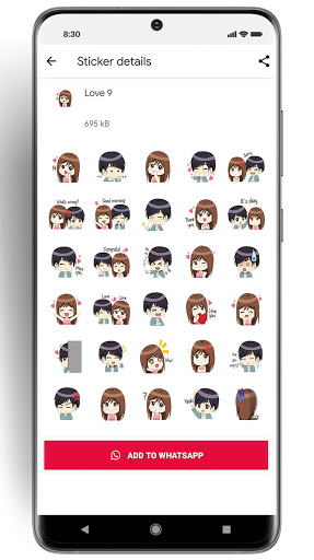 Take or give ultimate love stickers, love u too stickers, what's up love stickers, rom, antic love stickers. WAstickers app have so many stickers categories like text stickers and love quote stickers. WASticker have high-quality incredible stickers that you can stake with a lovely friend. Creativity and 100% security. Good morning, good night love stickers for whatsapp. Heart Awesome collections love stickers, kiss me love stickers, emoji & valentine stickers,and also we provide story of love, stickerslove quotes stickers for whatsApp and sorry love stickers share in a relationship and with friends.
