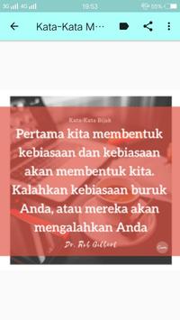 Ada banyak kata-kata mutiara dan kata-kata bijak yang ada didalam aplikasi ini, anda dengan mudah dapat menggunakannya untuk berbagai keperluan anda seperti untuk diset sebagai wallpaper phonsel atau untuk di kirimkan kepada saudara, teman-teman anda. Diperlukan koneksi internet untuk dapat menikmati aplikasinya ini tanpa adanya akses internet maka aplikasinya tidak akan bisa dinikmati secara penuh.