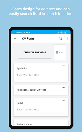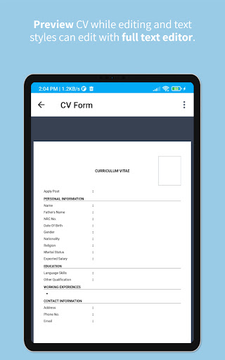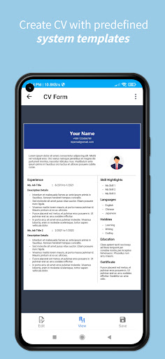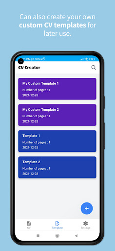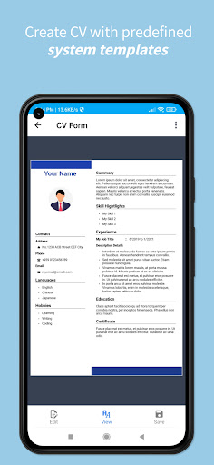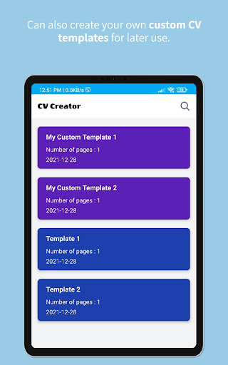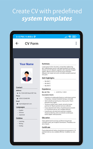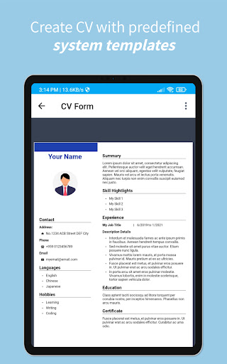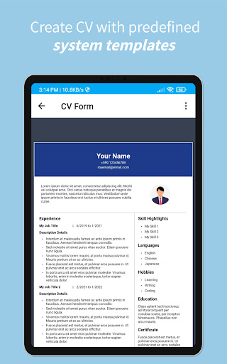 CV Creator to create CV and Resume with predefined templates and custom template.