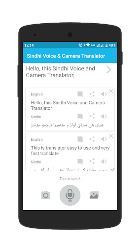 -> Sindhi Voice & Camera Translator is the only application where you can convert from one language to another by simultaneous camera, voice and text.