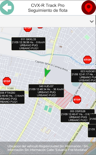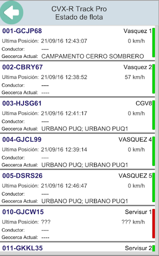 CVX-R S.A.'nın GSMLogger L1 sistemi ile ilişkili filosunun araçlarının kalıcı ve gerçek zamanlı yeri.