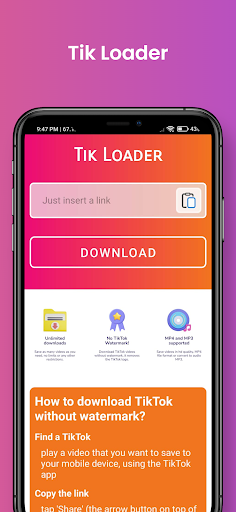 Tik Loader is a free tool helping you to download TikTok videos (formerly Musically) without watermarks online. Save TikTok video with the best quality in an MP4 file format with HD resolution. To find out how to use the TikTok video downloader, follow the instructions below. It’s simple process - you can download TikTok without watermark video in just three easy steps.