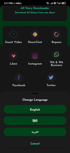 Download all status videos and images from any social meadia platform like Instagram, Likee, WhatsApp, WhatsApp-web,snak video,roposo, share-chat, Twitter, Facebook, etc. on a single click.