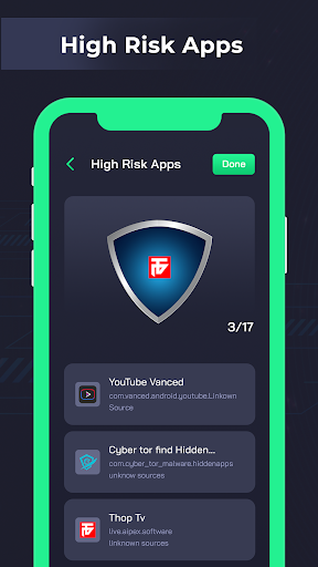 • Scan all apps of your mobile phone and find app which is from unknown resources and encrypted connection