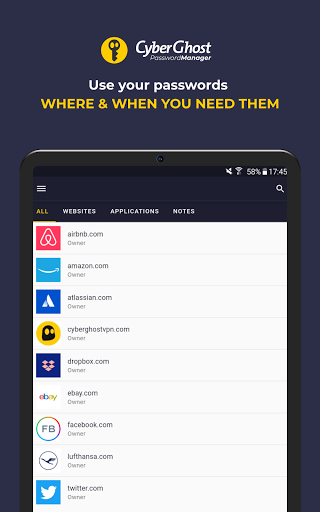 Unburden your memory, fortify the security of your online accounts, and never waste time on failed login attempts with CyberGhost Password Manager. Store all your essential passwords in an encrypted, super-secure, and hacker-free place.