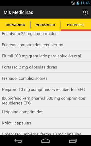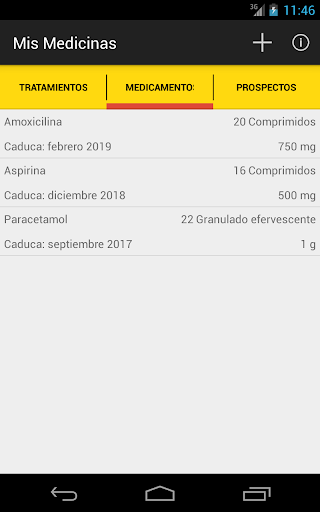 De forma clara y sencilla podrás añadir, modificar y borrar tratamientos médicos, cuyas alarmas se ajustarán automáticamente a tus necesidades. También podrás tener un control de tu inventario de medicamentos y su fecha de caducidad. Por último desde la aplicación podrás acceder a una base de datos de los prospectos de estos medicamentos, para consultarlos en caso de duda.