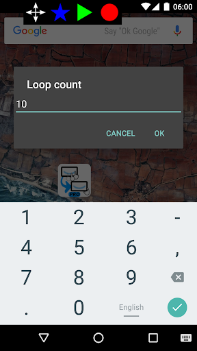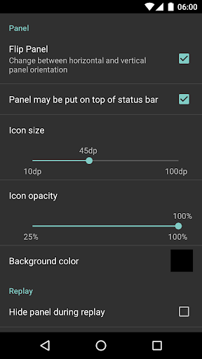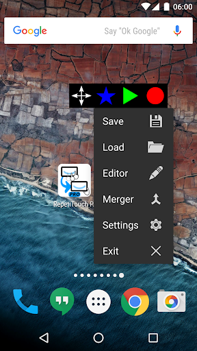 Just click the record button and start recording - the panel will stay on top almost all the time! When you're done, you can replay your touch events as easily. To access the menu, click on the star.
