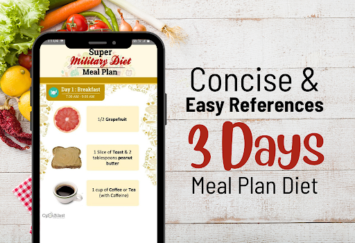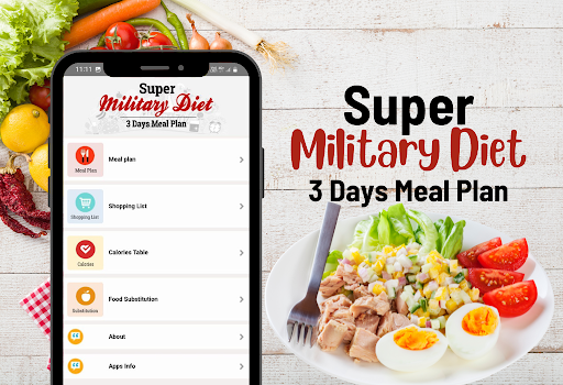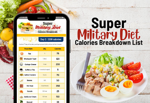 Food substitutions also provided in this Military Diet to help you select or replace alternative food that is not available in your hometown area. The menu plan food list provided in this Military app is easy to find and prepared.