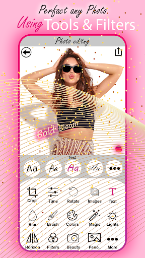 you don't need to be a pro photo editor to add some style to your pic with various photo filters such as Black&White, Neon Glow, Oil Painting and many others.