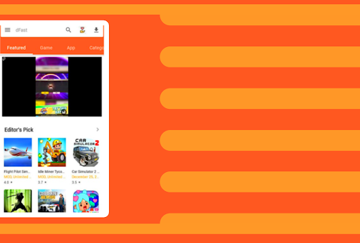 This new dFast app guide is a very visual app that guides the user's attention to help them to find the app he or she may be interested in. d fast download app guide main page shows you different tabs and menus to help you to quickly filter your search, looking for trending apps, games, collections...