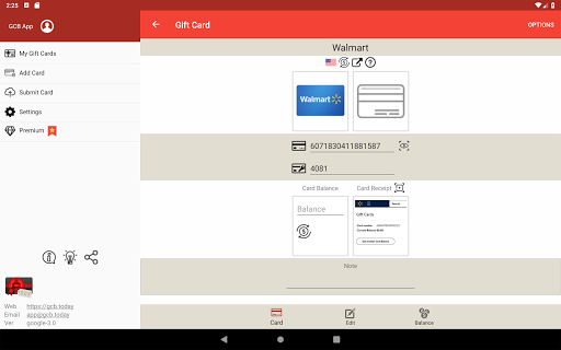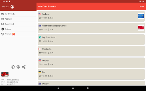 Gift Card Balance (GCB) check gift card balance live. The mobile gift wallet offers a simple yet accurate way to retrieve real time card balances since 2012. We strive to provide the most accurate and up-to-date information of gift cards worldwide! Balance check is performed by connecting directly to card merchant website. All giftcard records are 100% stored in your local device. For more details: https://gcb.today
