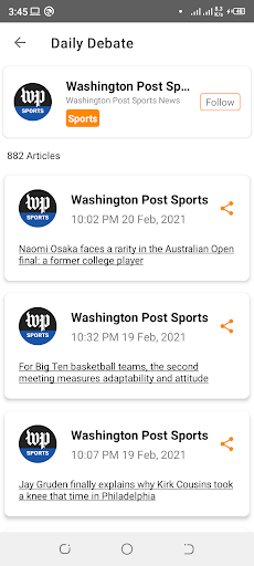 The Daily Debate website and app allow you to pick and choose the news you want to see in realtime. Whether it be CNN or FOX you're in control. Just sit back and watch your headlines scroll by. Just simply create a user, log in and start creating your customized news feed. It’s that easy!