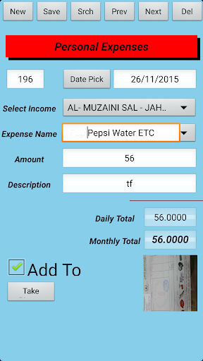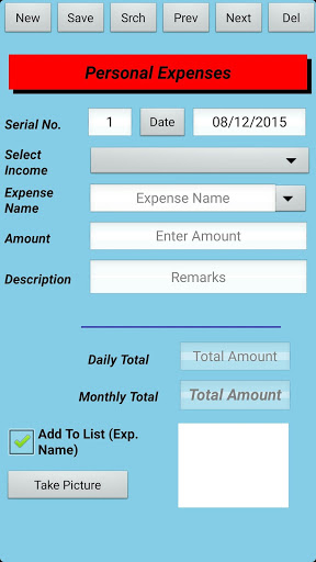Daily expense with Type / category auto Complete function. Category added without extra entry. Each expense on item automatically add into the database and no need to add again. you can select from list and get information how many time you buy in a day, week , month year. Complete record of each item/ expense