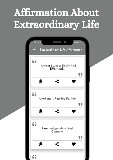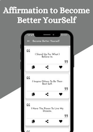 Affirmations are basically daily motivation or positive quotes which encourage you to inspire yourself and others. Our daily affirmation feature convinces you about you can and you will. It motivates you and tells you about yourself. You can achieve anything in your life. Our positive affirmation app can rewire your brain, helps you improve your self esteem, personal growth, and self improvement and helps you setting goals and stay loyal with them and then definitely live a better life. And most importantly, your daily self care routine boosts up, and your vision of thinking improved by its self.