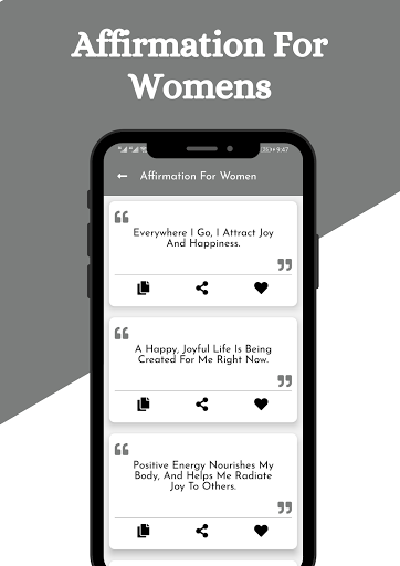 This daily affirmation app helps you improve your mindset, clear your vision strengthens your self confidence and shares self care tips with you. Because positive thoughts play an essential role to your success and happiness. And if your mind is full of negative thoughts then it is impossible to be happy and successful. Believe in yourself, stay focused on your daily agenda also read motivational quotes and inspirational quotes. Our positive affirmation app improves your personal growth, self esteem, and the most crucial thing, your daily routine. Research shows that daily affirmation is the most important thing affirmation increases the feeling of self worth, which improves your self growth.