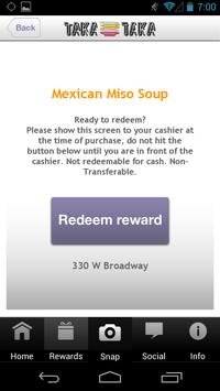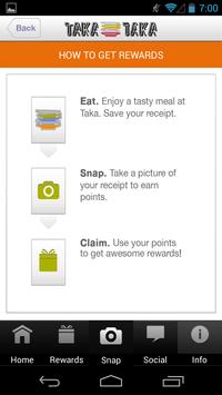 Earn free food from TAKA TAKA! Snap a photo of your receipt, submit it through the app - and Listo! - you’ve just earned points toward delicious rewards. We appreciate and value your feedback and questions. Happy snapping and buen provecho!