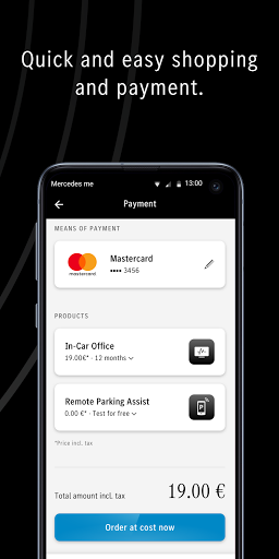 - WELL INFORMED: the App gives you an overview of runtimes and further developments of your Mercedes me connect services and on-demand features and enables them to be extended easily. So you have everything in view.