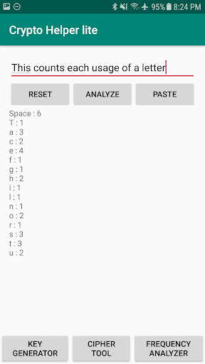 Frequency analysis page finds how many of each ASCII character are found in a given string of text