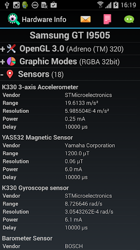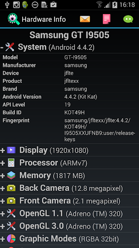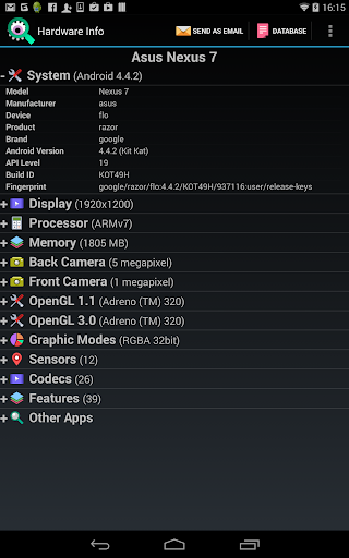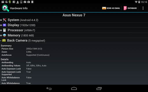 ● The app contains the "Hardware Database" optional in-app purchase, which allows you to browse through thousands of hardware specs for other android devices