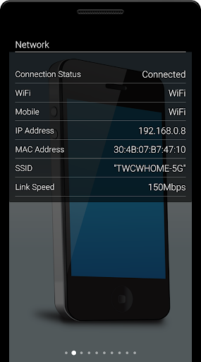 WiFi, Connection Status, Mobile, IP Address, MAC Address, SSID, Link Speed.