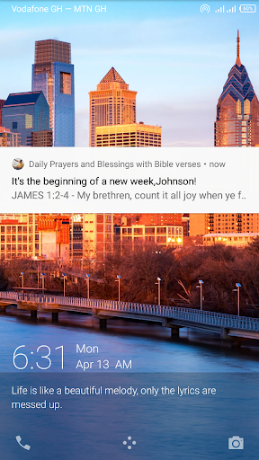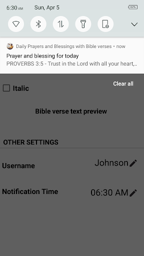 It sends a daily Bible Verse with prayer and blessing to users at the user's preferred time.