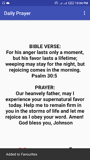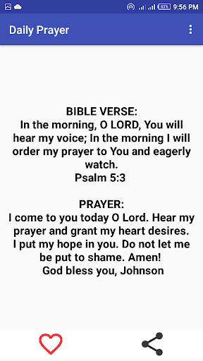 Users are able to share the Bible verses and prayers with others and add the prayers to their favourite list. This is a powerful prayer app and highly recommended to everybody. Thank you. God bless you!