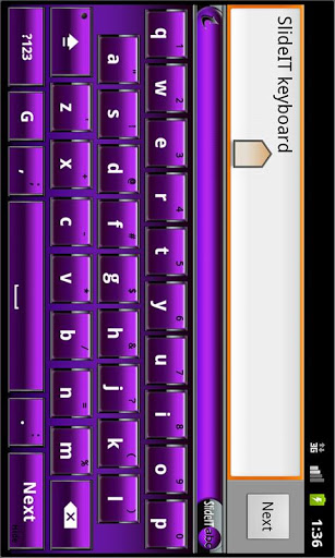 Want to have this skin on your keyboard get SlideIT Keyboard.An addon for the SlideIT keyboard.This is a skin addon to change the look of the SlideIT keyboard to have Purple sharp look.SlideIT keyboard is not included and must be installed separately.This theme will work only with SlideIT version 5.0 and upDasur Ltd addon skin.
