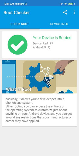 One touch solution to check whether the device is rooted or not.