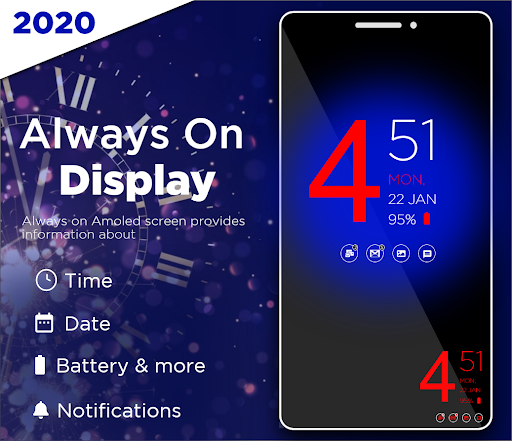 Set your own choice Display Clock on Screen with this amazing Always on Display (AOD) App. Even you can set Clock Display on main screen with lock Display widget. Best Clock Display on home screen to make your phone Always on Display and Edge (AOD & AOE) with new Clock App. Set Clock Live Wallpaper of Digital Clock and Analog Clock on your home screen or lock screensaver. Super AMOLED clock to show time always on display and edge on screen. Best Night Clock Time App in your phone to set Screen Saver & Live Display Clock Wallpaper for Free.