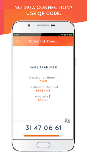 Datablink Mobile 200 is an innovative mobile app that offers advanced authentication and financial transaction signing for users and their banks enabling the prevention of unauthorized access and fraudulent transactions. Rather than requiring a user to physically type a code into a device to generate a one-time password, users simply use their smartphone to confirm their identities. No other devices are required. To verify a user’s identity or sign a specific transaction, the organization can choose to employ push technology or use a QR Code that is read by the user’s smartphone camera.