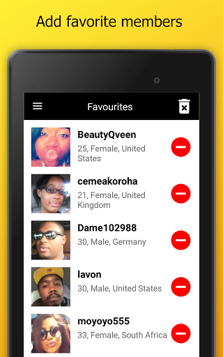 Sexy and Black Dating is a FREE exclusive dating network for single black men and single black women looking for love, friendship or online flirt around the world. Sexy and Black Dating is a social dating app for African American men and African American women wanting to chat with other single men and single women. Sexy and Black Dating is a FREE app to meet and chat with single black ladies and single black men as well as interracial men and interracial women looking to hook up and meet up online.