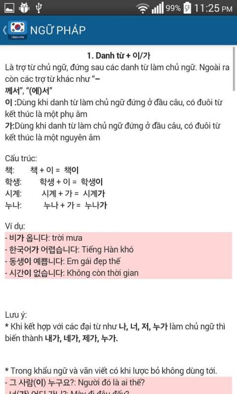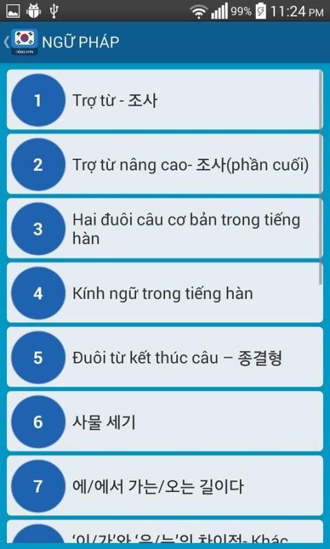 Ứng dụng Học tiếng Hàn với phần giải nghĩa tiếng Việt cực đầy đủ với hơn 100 bài ngữ pháp, cùng với 1000 mẫu ngữ pháp tiếng Hàn phong phú...
