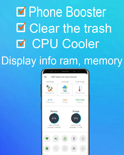 The battery application is very small and light, with an intuitive, neat and beautiful interface that will help you have a good experience to monitor and take care of your phone's battery.