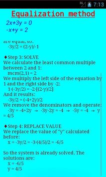 Systel (SYSTem of Linear Equations) is the best application to solve systems of linear equations with substitution, equalization and reduction methods. This resolution will show each and every one of the steps required to achieve the solution, interacting with the user.