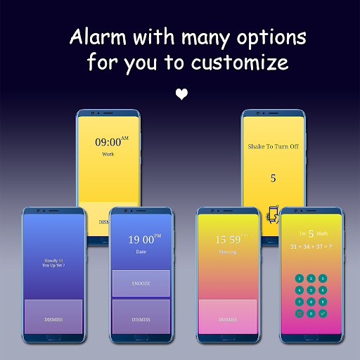 ✔️ Snooze, vibrate, set your own favorite music, select repeat days and more .
