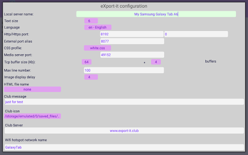 server distributes by default all video, photo, music and eBooks (including .pdf) to clients over the local Wi-Fi network and, if configured, over Internet.
