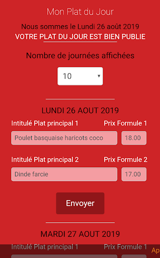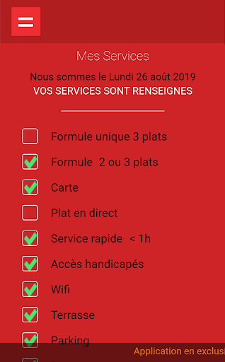 - Mes paramètres de recherche (permet de restreindre ou d'élargir sa recherche des restaurants proposant un "Plat du Jour" en fonction de multiples critères tels que la distance, le prix et le choix d'un ou plusieurs services)