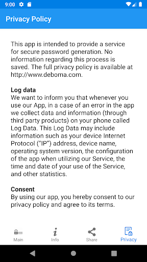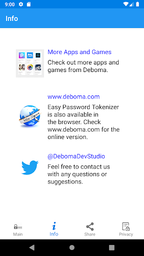 Privacy Policy: http://deboma.com/app/easy-password-tokenizer/privacy-policy