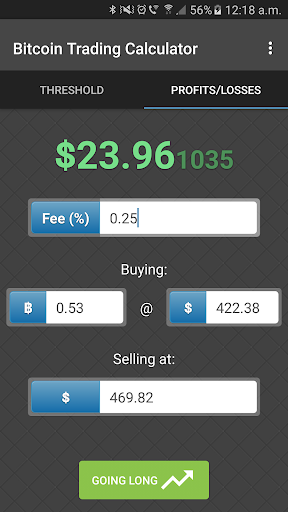The easy Bitcoin Trading Calculator allows you to calculate the Profit Threshold that your Bitcoin trade will begin to make a profit.