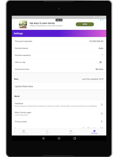 once downloaded, rates is saved on your device! No internet needed.