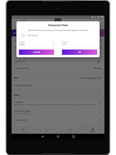 - add custom fee to your conversions, by percent or/and by value