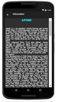In this apps you can get info about APink biography, Tour Dates, with links to social media singer,Facebook, Twitter, Fan chat, add notes, play music with stream online and lyrics on songs APink